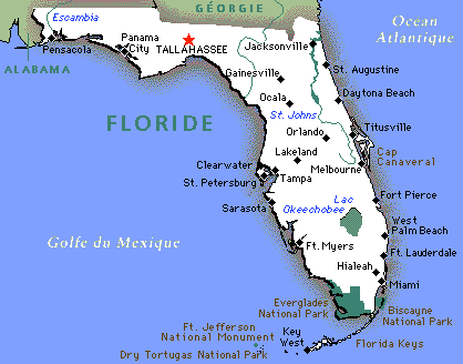 La Floride, appelée aussi "The Sunshine State", est un des 50 états que composent les Etats-Unis d'Amérique. Située à l'extrême sud-est du pays, elle est bordée à l'ouest par le golfe du Mexique, au nord par l'Alabama et la Géorgie et à l'est par l'océan Atlantique. Il s'agit du quatrième état le plus peuplé du pays avec environ 19 millions d'habitants. Sa capitale politique est Thallahassee mais la ville la plus peuplée est Miami. La langue officielle est l'anglais cependant l'espagnol y est couramment parlé. Il est à noter que le célèbre parc national des Everglades est classé au Patrimoine mondial de l'Unesco depuis 1979.
